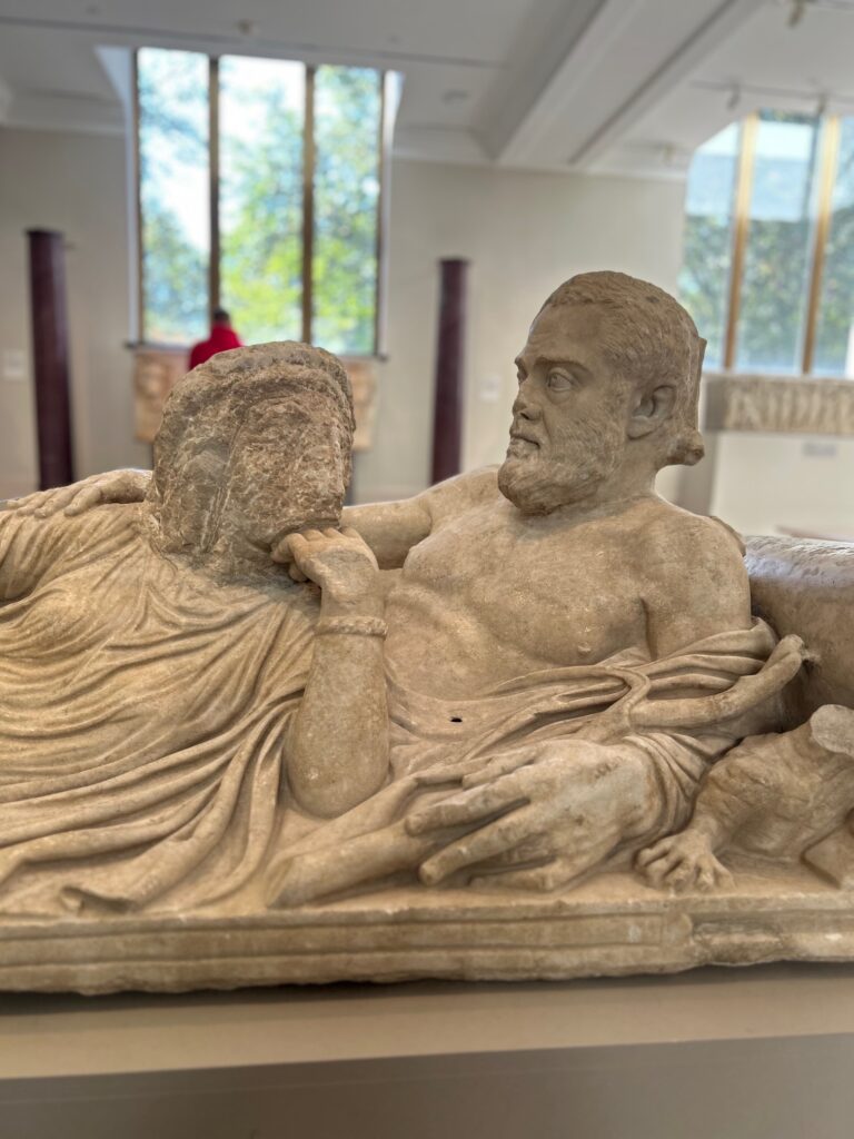 Happy Halloween! This year, I’m traveling, and I’m sad that I’ll miss my tradition of walking around my neighborhood with two friends, to look at all the costumes and bonkers decorations. New York City Halloween is terrific. I’ve been having fun with a list that the Metropolitan Museum created, of its “20 Scariest Artworks.” I love to test my knowledge of the Met, and I was very familiar with all but three of these works. However, two works that I’d propose didn’t make the list. First, I find the unfinished face on this marble sarcophagus lid (Roman, AD 220) very unsettling. (“While the man’s head is carefully portrayed, his wife’s head has been left unfinished, suggesting that he predeceased her, and no one added her portrait after she died.”) Second, of all the objects in the museum, I think that this Kafigeledjo (“he who speaks the truth”) (Senufo artist, 19th-mid-20th century) has the most uncanny power. I visit it almost every time I go to the Met. “A hybrid creation that lies outside the realm of anything recognizable in nature, this oracle figure deliberately provokes anxiety through its shrouded anonymity and the entrapment it suggests.” The fact that the figure’s proportions suggest a toddler dragging a toy make it all the more eerie.